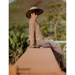 Es una gasa confeccionada con parcialmente con materiales reciclados  56% poliéster reciclado y lleva un forro opaco también en tejido reciclado 100% acrilico ( reciclado)