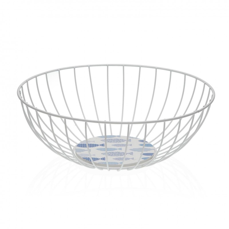 Frutero en metal y fondo en madera MDF de estampado de peces.