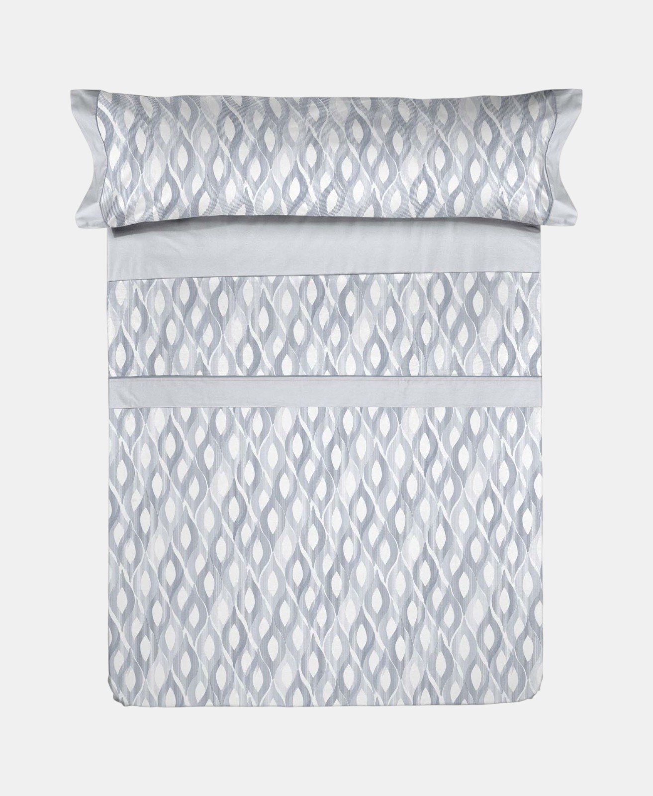 Juego de sábanas de Pierre cardin. Confeccionado en una equilibrada mezcla de algodón y poliéster, este juego ofrece una textura suave, fresca y duradera, perfecta para los meses más cálidos del año. Su diseño estampado aporta un aire moderno y relajante, adaptándose con facilidad a distintos estilos de dormitorio.