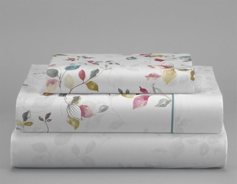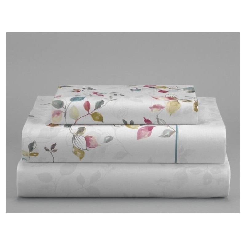 Juego de sábanas en coralina de Clara Vidal. Este modelo destaca por su diseño floral delicado y moderno. La sábana encimera y la funda de almohada presentan un estampado de flores. La sábana bajera casi lisa, complementa perfectamente el conjunto, creando una armonía de colores ideal para transformar tu dormitorio en un refugio acogedor.