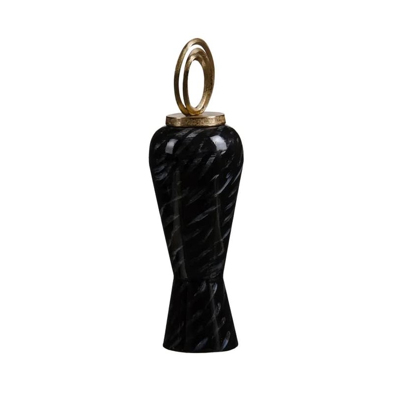 Tibor de cristal en negro-oro de 18x18x58 cm para el hogar