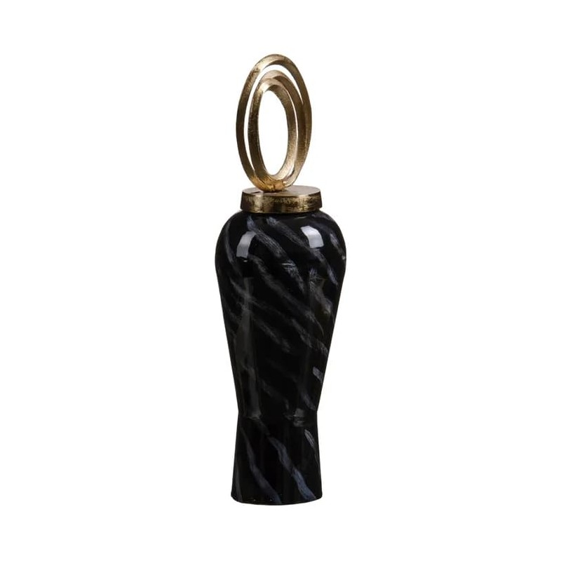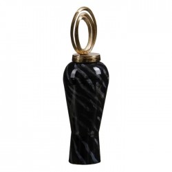 Tibor de cristal en negro-oro de 15x15x46 cm para el hogar