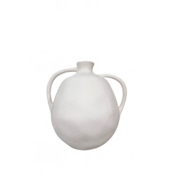 Florero en cerámica blanco de la marca Balcosta con un diseño redondeada como ánfora o vasija antigua.