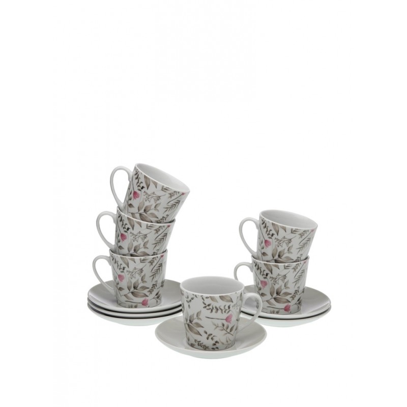 Set de 6 tazas de te con plato.Porcelana.