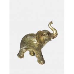 Figura elefante en tono dorado con acabado de brillo metálico y grabados.