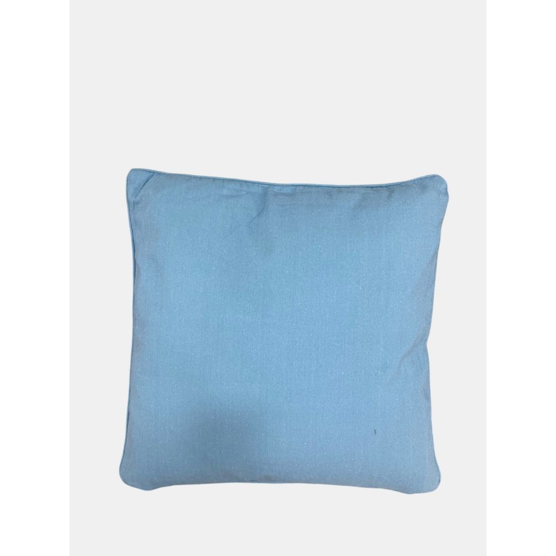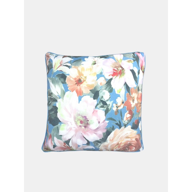 Cojin floral 45 x 45 cm. En flores tipo ingles en tonos azules camilla. Influye relleno.