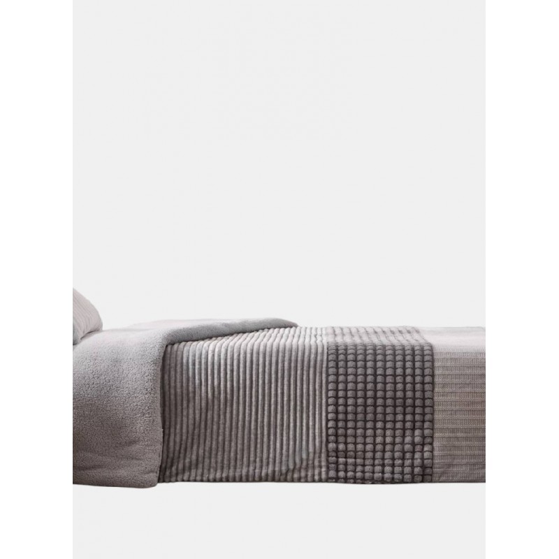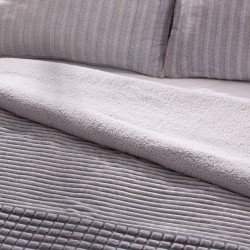 Edredón de borreguito de Manterol. Suave y cálido. En el lado superior, destaca por fusionar diferentes texturas, y en el reverso, destaca el cálido y suave tejido sherpa o borreguita.