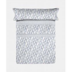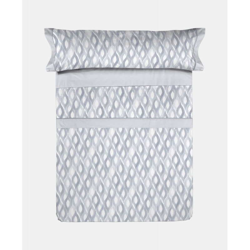 Juego de sábanas de Pierre cardin. Confeccionado en una equilibrada mezcla de algodón y poliéster, este juego ofrece una textura suave, fresca y duradera, perfecta para los meses más cálidos del año. Su diseño estampado aporta un aire moderno y relajante, adaptándose con facilidad a distintos estilos de dormitorio.