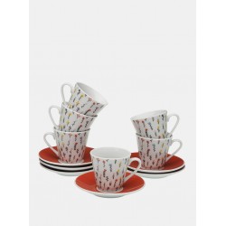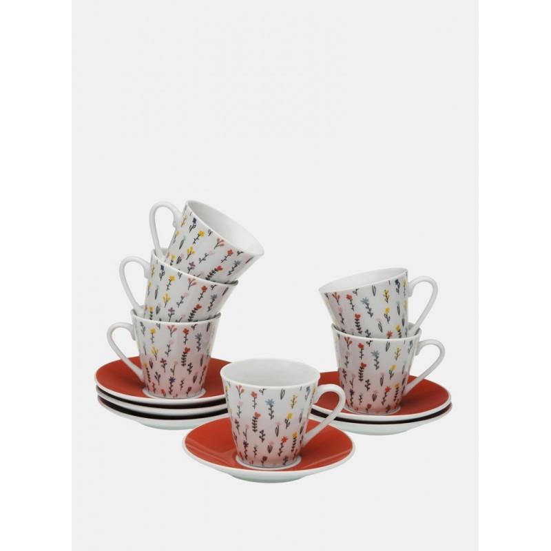 Set 6 tazas de cafe. Porcelana. Estampado floral. Con plato.