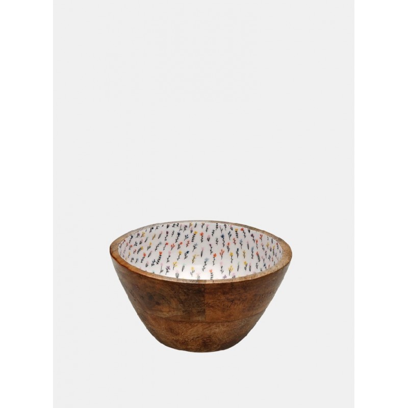 Cuenco de madera. Patrón de flores en su interior. Ideal para aperitivos.
