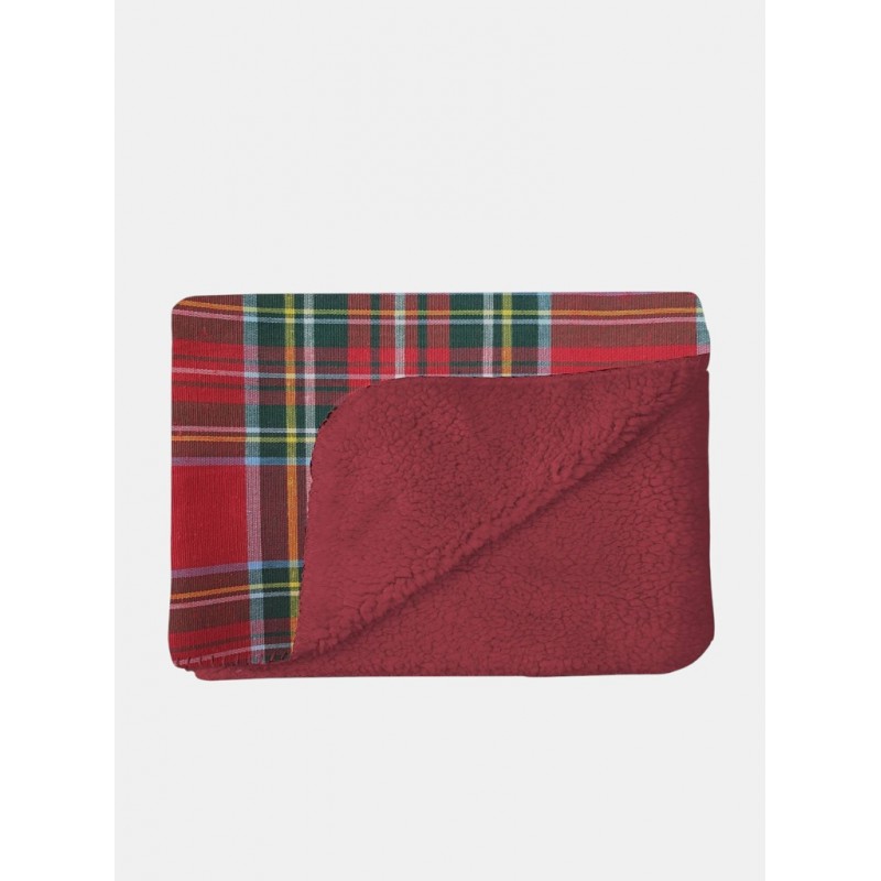 Manta de sofa de manterol. Dos caras con textura diferentes,un lado estampado a cuadros escoceses clásico y atemporal, y el reverso de borreguito suave y cálido para una máxima comodidad.Incluye estuche original reutilizable para guardar entre temporadas.