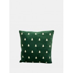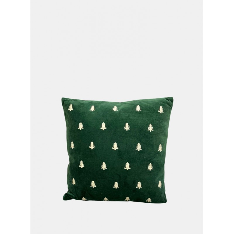Cojin navideño 45 x 45 cm. Un elegante patrón repetitivo de pequeños árboles de Navidad bordados en hilo dorado.Aporta un toque clásico y opulento a la decoración festiva.