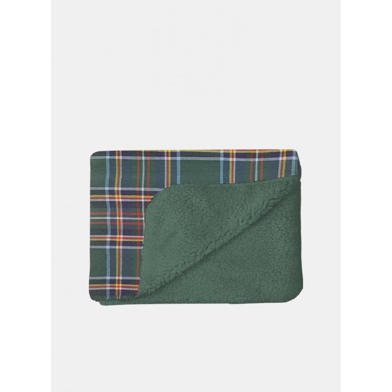 Manta plaid estampada. Su estampado a cuadros escoceses aporta un toque clásico y sofisticado, mientras que el reverso de borreguito suave garantiza una sensación acogedora y confortable en cada uso.