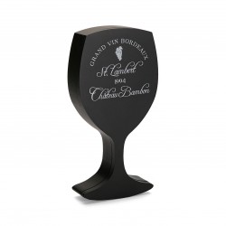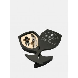Set de dos piezas para vino. Presentado en un original y sofisticado estuche con la forma de una copa de vino.