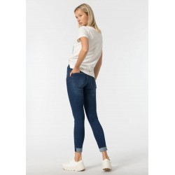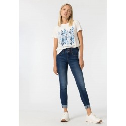 La modelo mide 178 cm y usa una talla 28Composición: 70% Algodón / 14% Rayan / 14% Poliéster / 2% Elastano