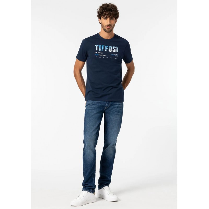 Pantalón comfort fit con cinco bolsillos. Cierre frontal con cremallera y botón metálico.
