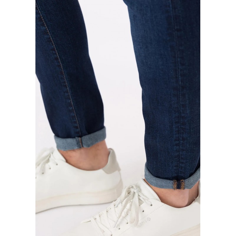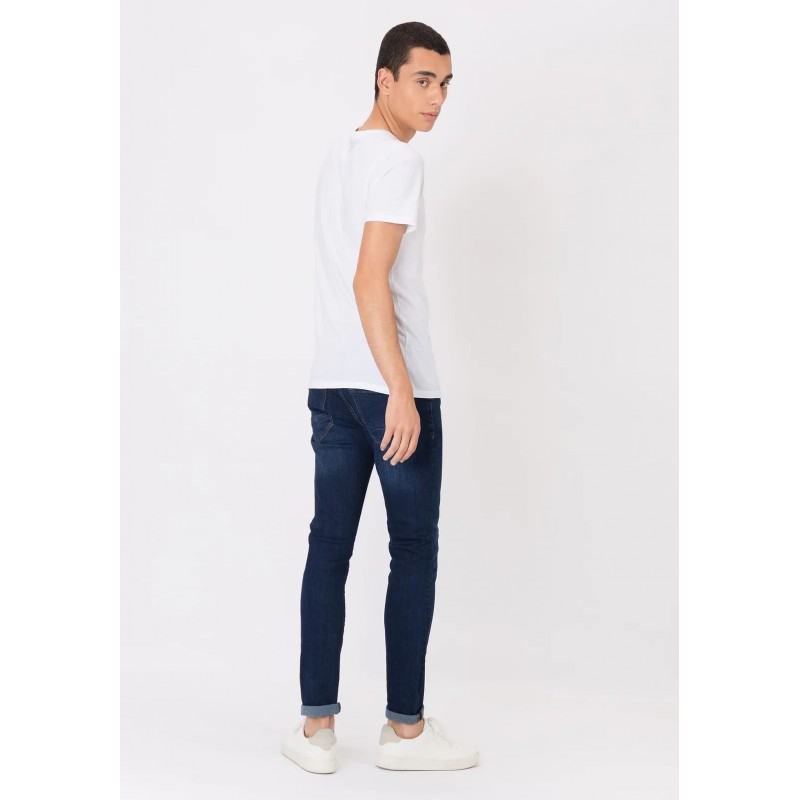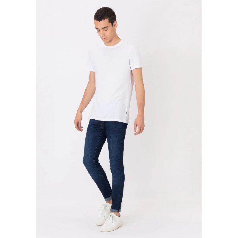 Pantalón super slim fit con cinco bolsillos. Cierre frontal con cremallera y botón metálico. Efecto lavado.