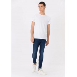 Pantalón skinny fit con cinco bolsillos. Cierre frontal con cremallera y botón metálico. Efecto lavado.