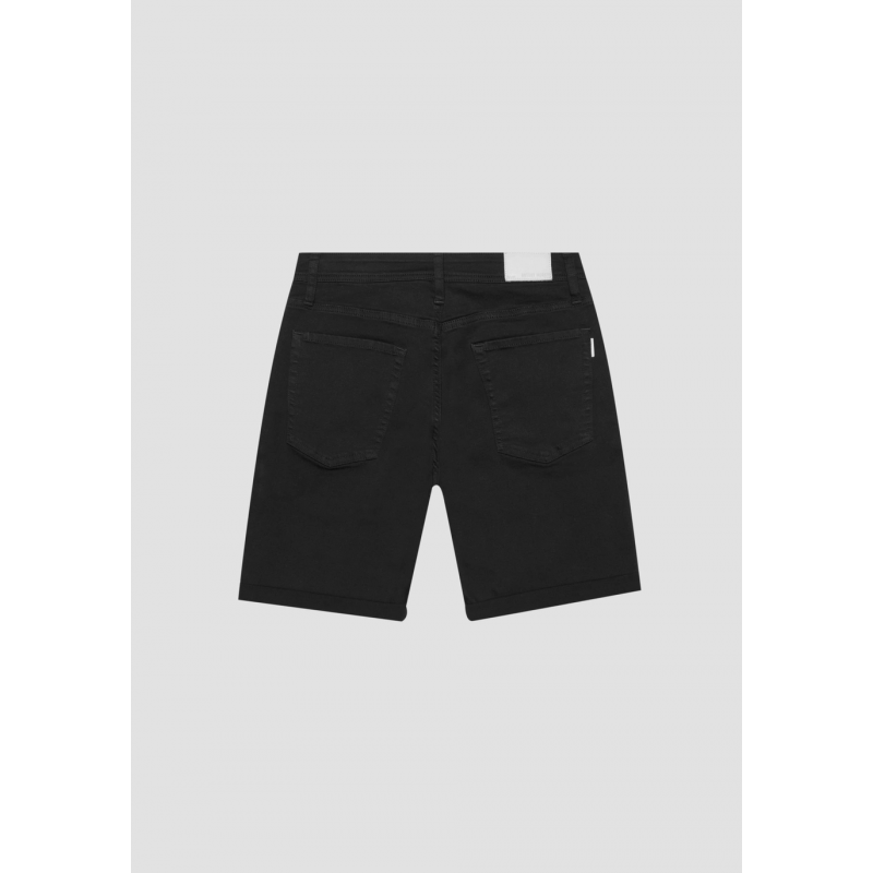 Bermuda skinny para hombre de cierre de cremallera y botón, 5 bolsillos, detalle de la marca y dobladillo en el bajo.