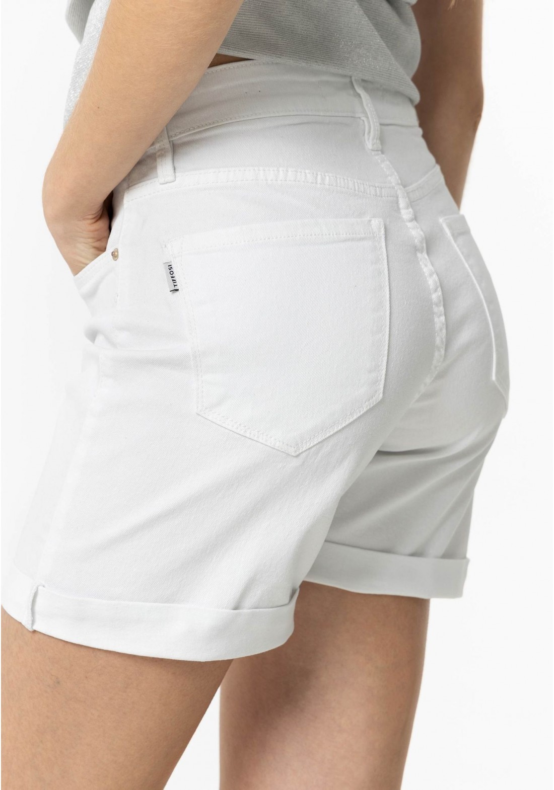Pantalón para mujer de cierre de botón y cremallera, 5 bolsillos y corto.