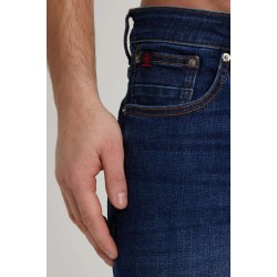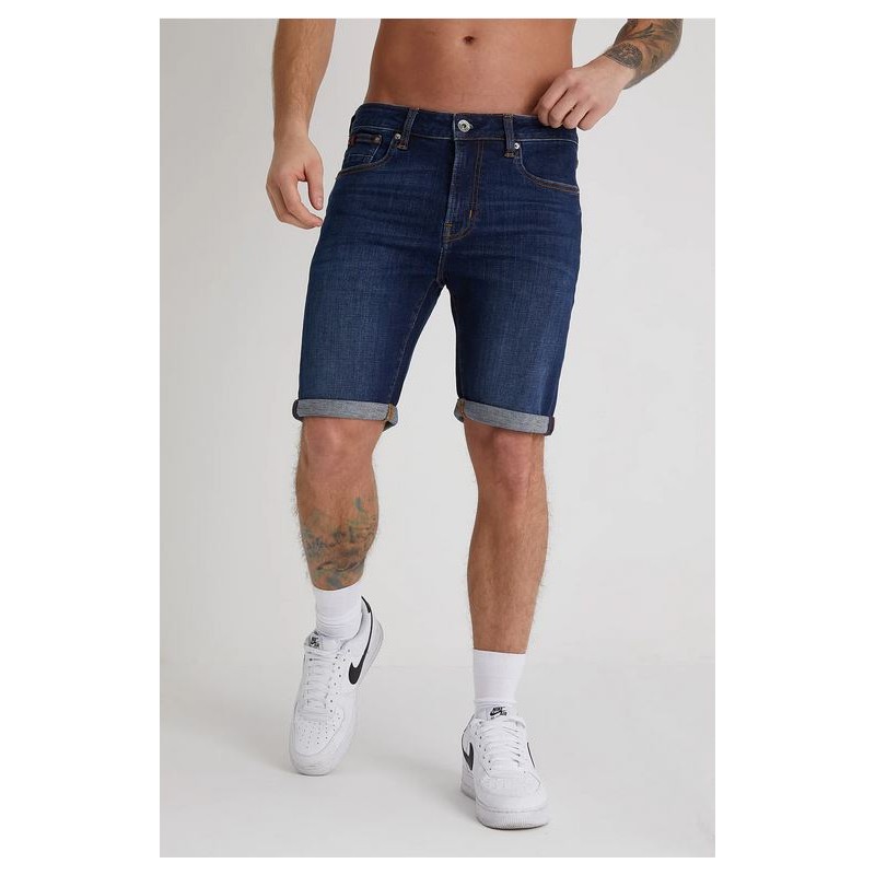 Short tejano de 5 bolsillos con cierre de cremallera y botón. Parche de cintura Jacron.