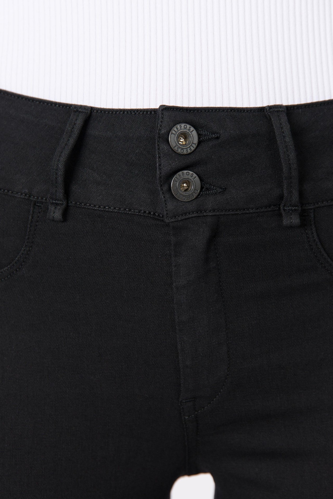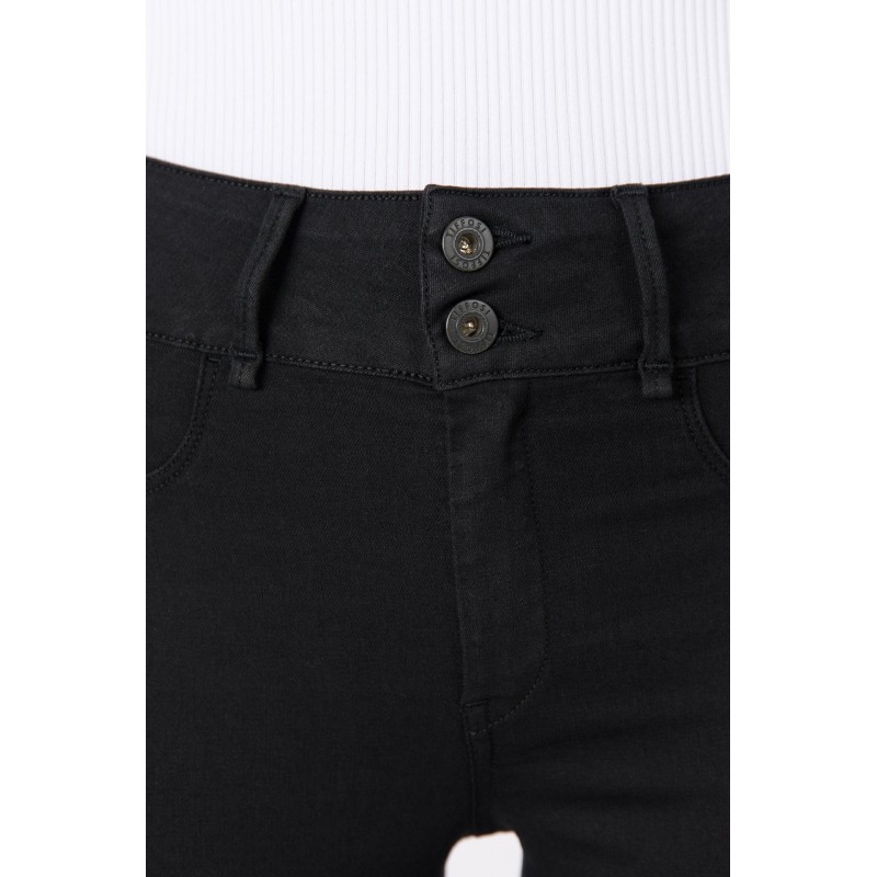 Pantalon denim skinny para mujer.De tiro alto con tres bolsillos. Efecto push-up y push-in. Cierre frontal con cremallera y botones metálicos. Bolsillos falsos delanteros. Soft denim.