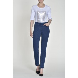 Pantalon denim confeccionado en tejido elástico para mujer.