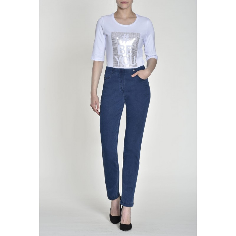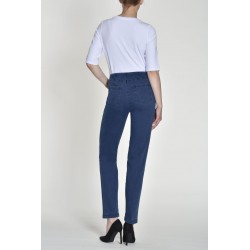 Pantalon denim confeccionado en tejido elástico para mujer. Cintura elástica.