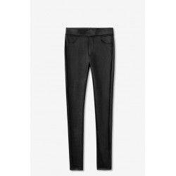 Pantalon basico efecto encerado para mujer. Talle alto. Cintura elástica.