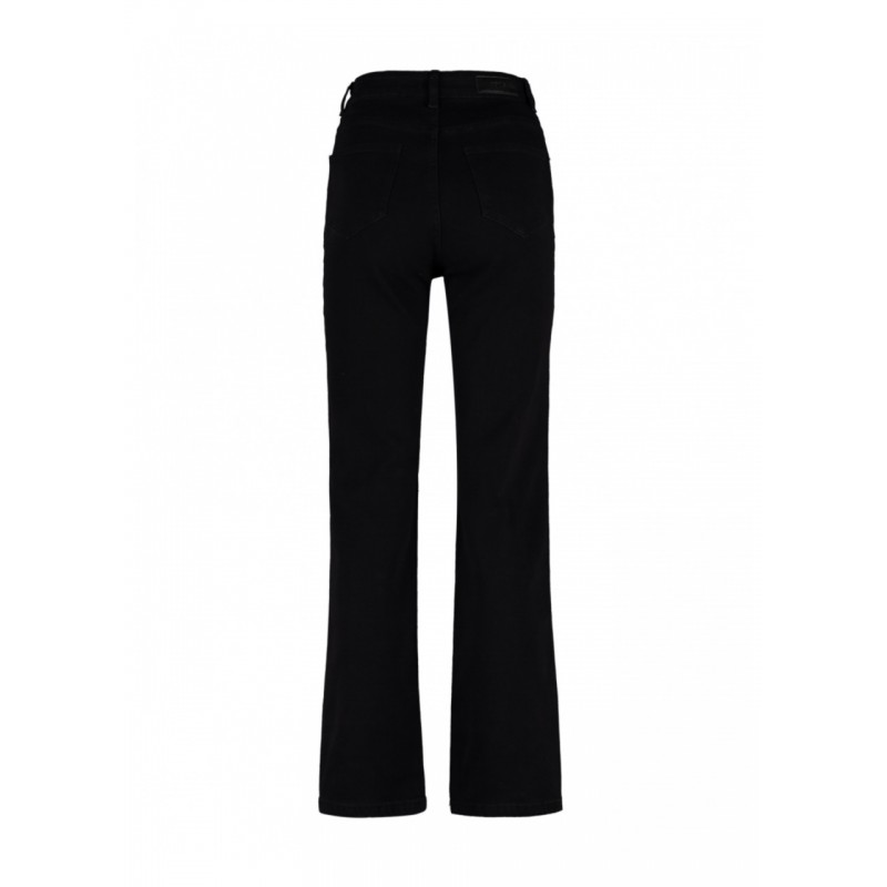 Pantalón denim para mujer de cierre de botón y cremallera más 5 bolsillos y bajo acampanado.