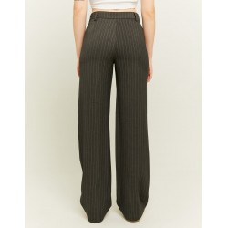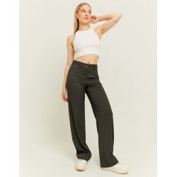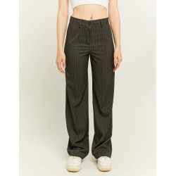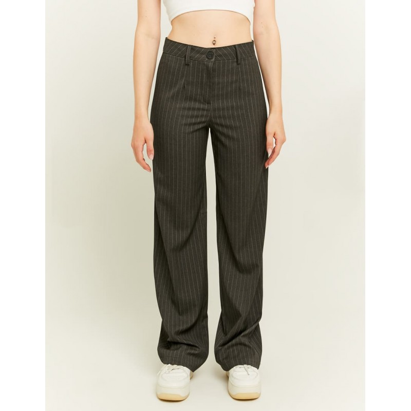 Pantalón corte recto para mujer de rayas diplomáticas, cintura alta, cierre de botón más cremallera y bajo.