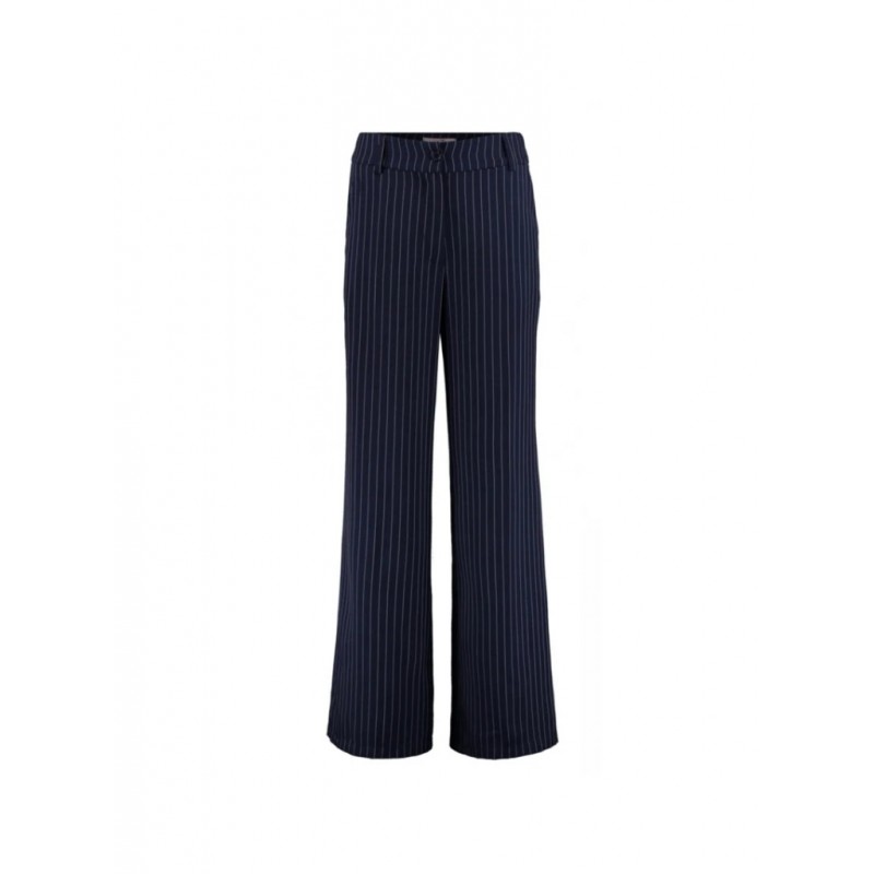 Pantalon ancho con diseño de raya diplomática para mujer. Cierre con botones y cremallera.