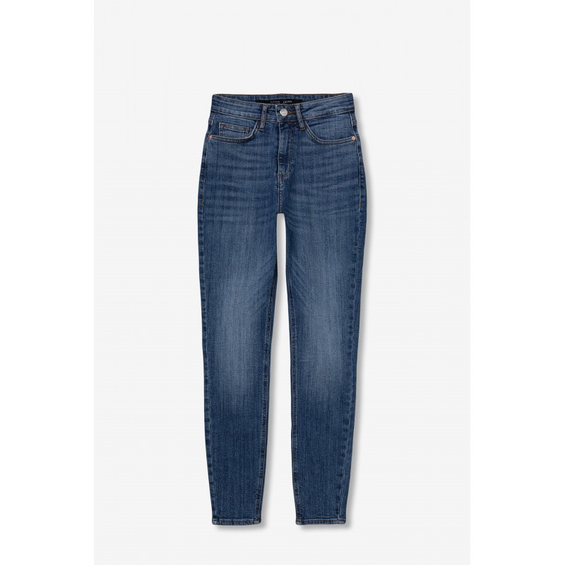 Pantalon denim skinny de tiro alto para mujer. Cierre frontal con cremallera y botón metálico.