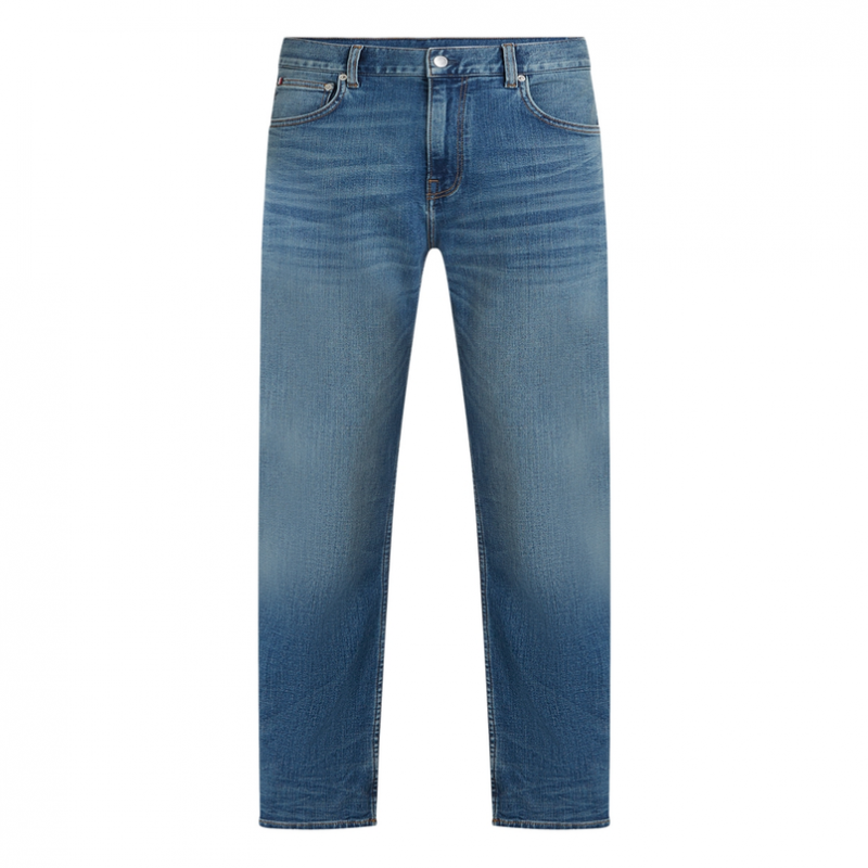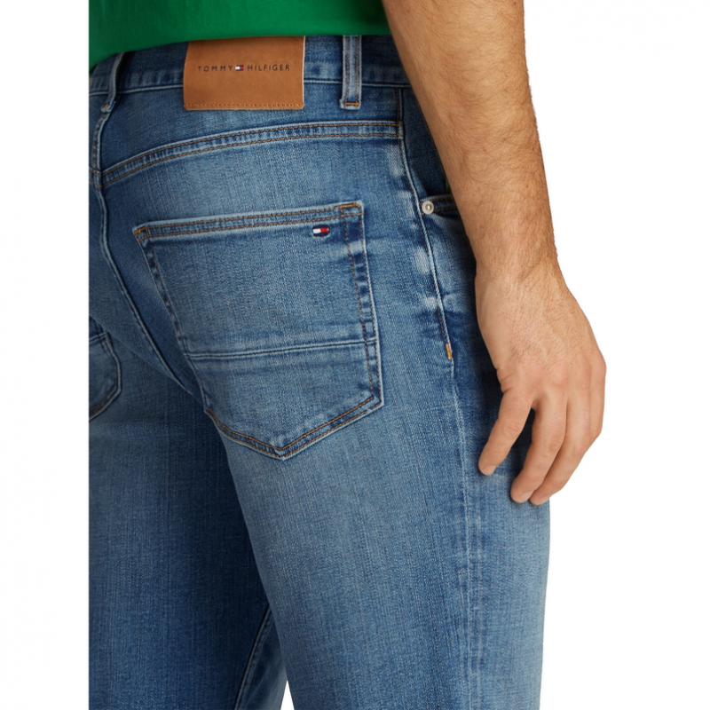 Pantalon largo confeccionado con denim muy elástico para hombre. Cierre con cremallera y botón. Corte recto. Estilo de cinco bolsillos. Cinta distintiva en el bolsillo para monedas. Bordado de la bandera de Tommy Hilfiger en el bolsillo trasero.