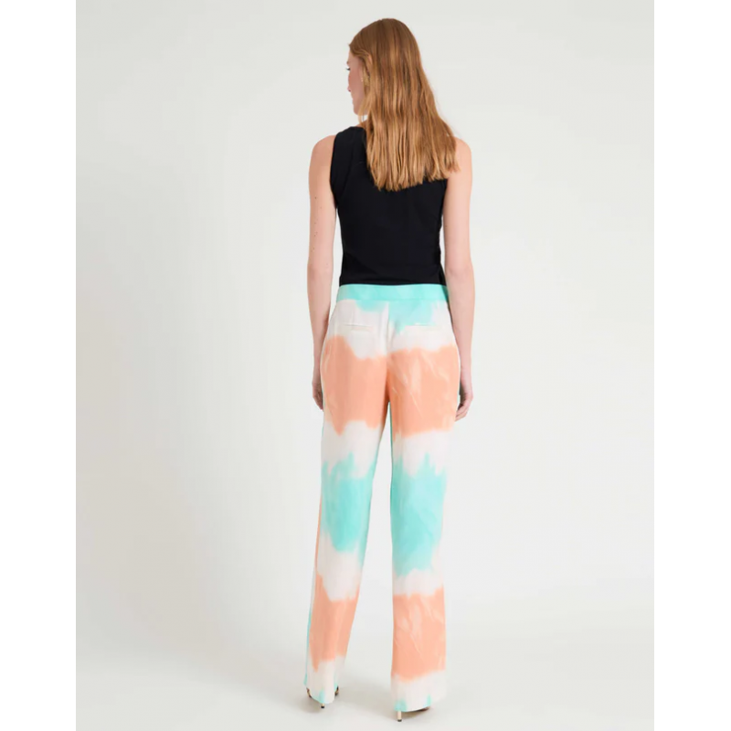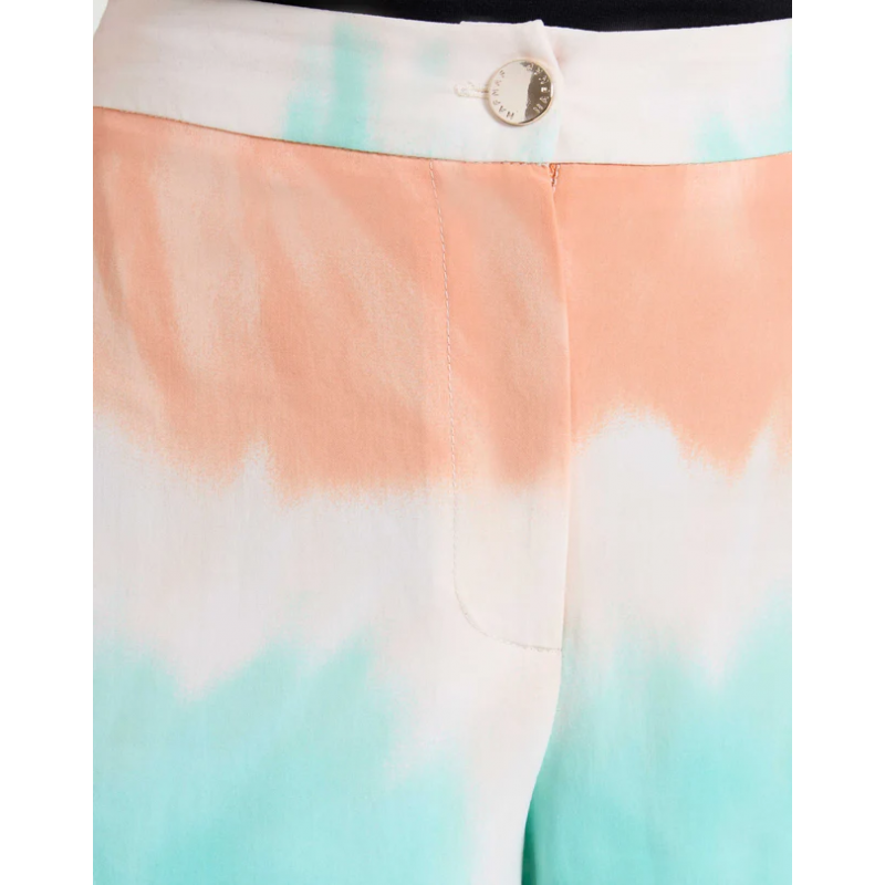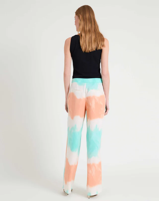 Pantalón recto estampado para mujer. Sin bolsillos. Con cierre de botón y cremallera. De tiro medio.
