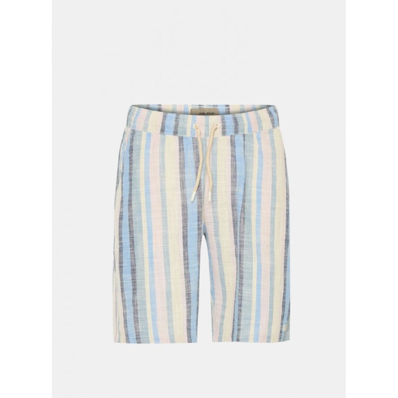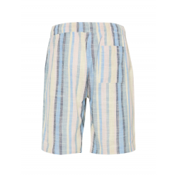 Bermuda estampada para hombre. Cintura elástica. Estampado a rayas. Dos bolsillos laterales y uno trasero.