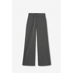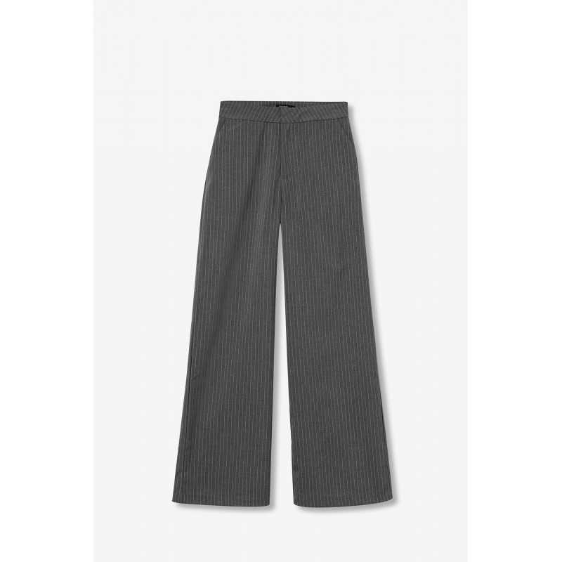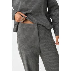 Pantalón largo para mujer. Straight fit a rayas con dos bolsillos, cintura alta y cierre de cremallera con corchete.
