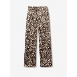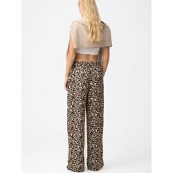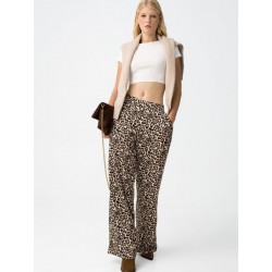 Pantalón largo fluido para mujer. De pierna recta y ancha, con elástico en la parte trasera de la cintura. Modelo con bolsillos delanteros y estampación animal print.