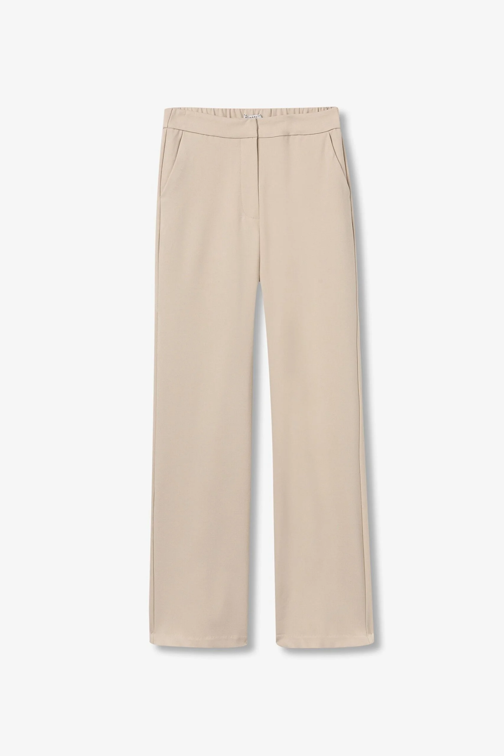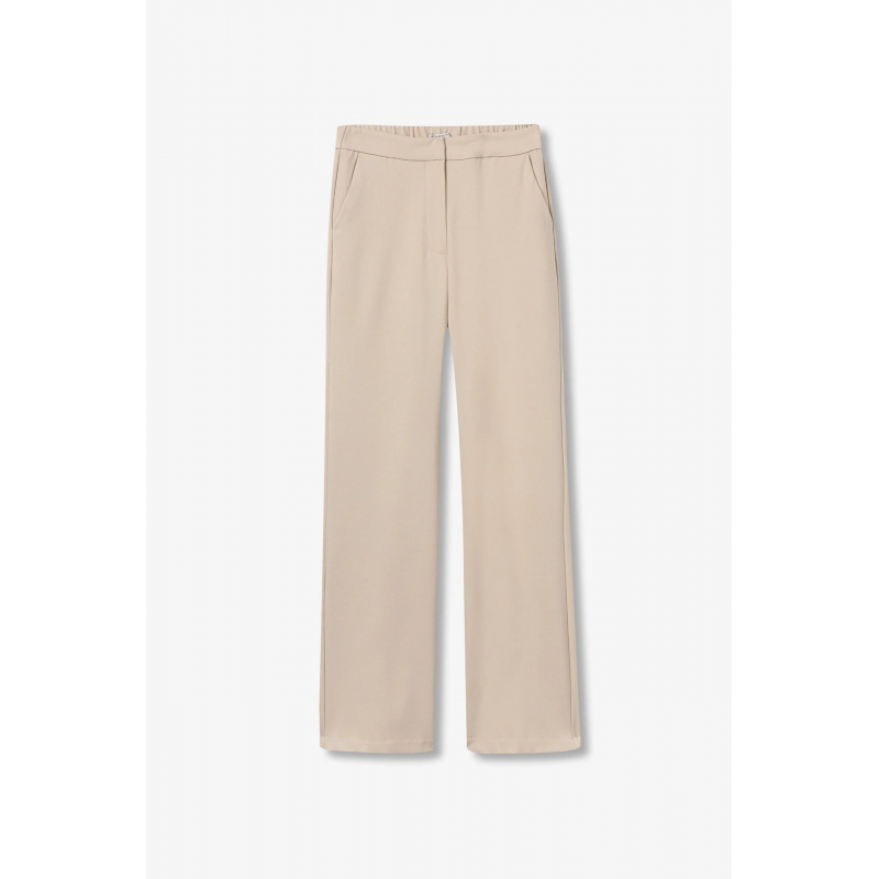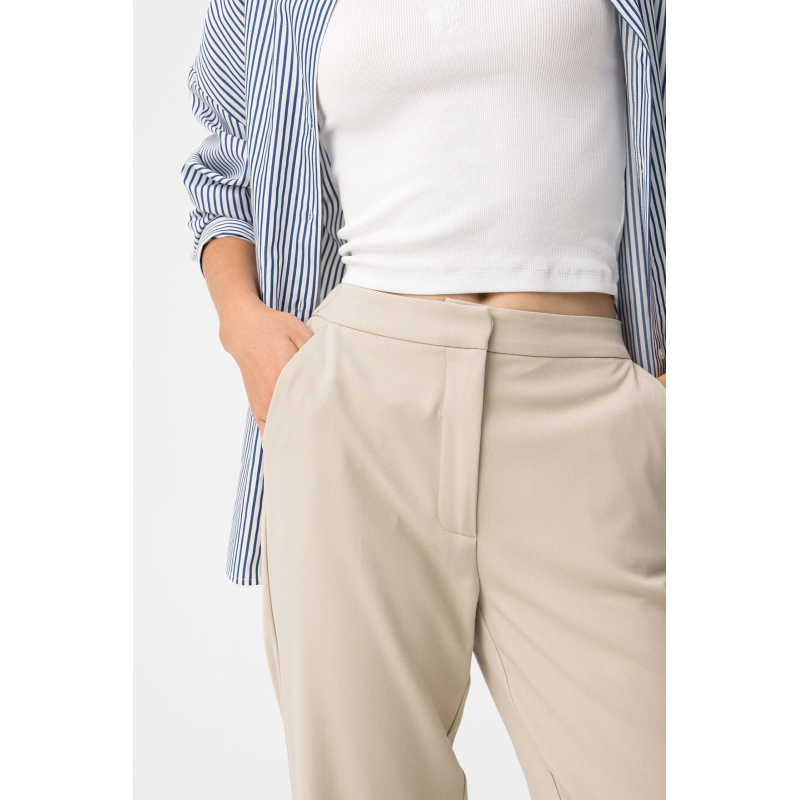 Pantalón chino para mujer. Con dos bolsillos frontales, cintura con elástico incorporado y cierre frontal con cremallera, gancho y botón interior.