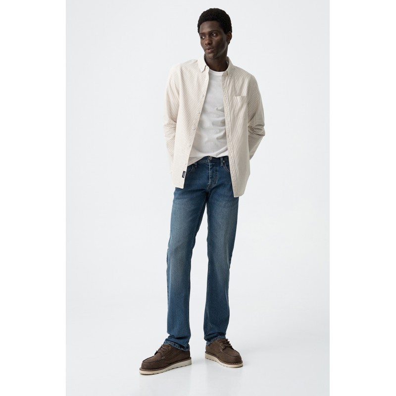 Pantalón denim para hombre. De corte slim con cinco bolsillos. Cierre frontal con botones ocultos bajo la tapeta y botón metálico.