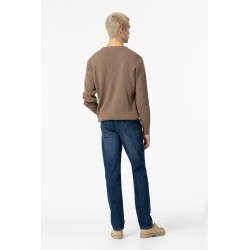 Pantalón denim para hombre. Con corte recto y cinco bolsillos, cierre de cremallera y botón metálico.