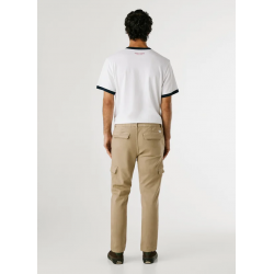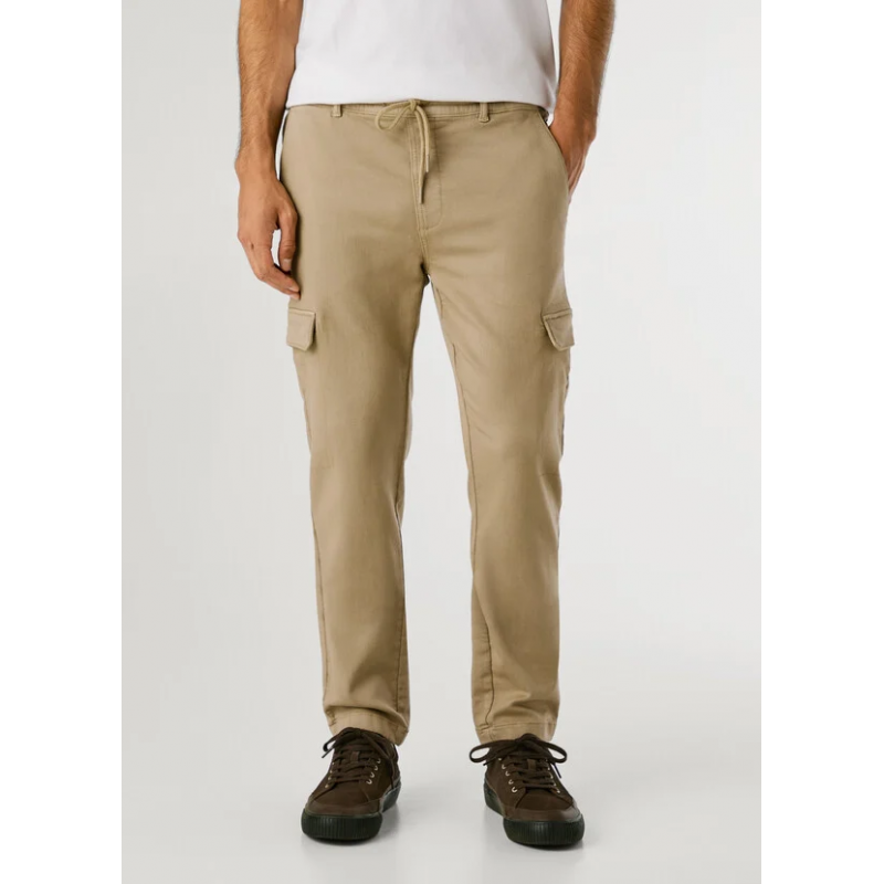Pantalón cargo para hombre. Fit slim. Cintura elástica con cordón ajustable. Trabillas para cinturón. Bolsillos cargo laterales y traseros con solapa.