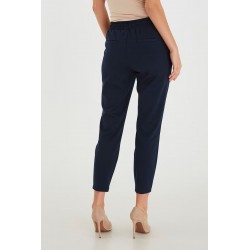 Pantalón casual para mujer. Con su corte y cintura regulares, son una opción cómoda y elegante. Su largo hasta el tobillo le da un toque moderno a tu look. Confeccionados con un tejido de punto de alta calidad que incluye poliéster, viscosa y elastano, estos pantalones ofrecen un tacto suave y elástico.