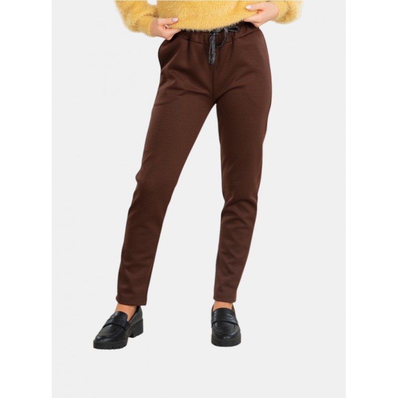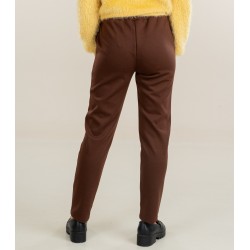 Pantalón para mujer de cintura elástica con cordón ajustable, corte recto y bolsillos laterales.