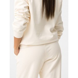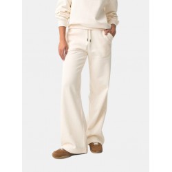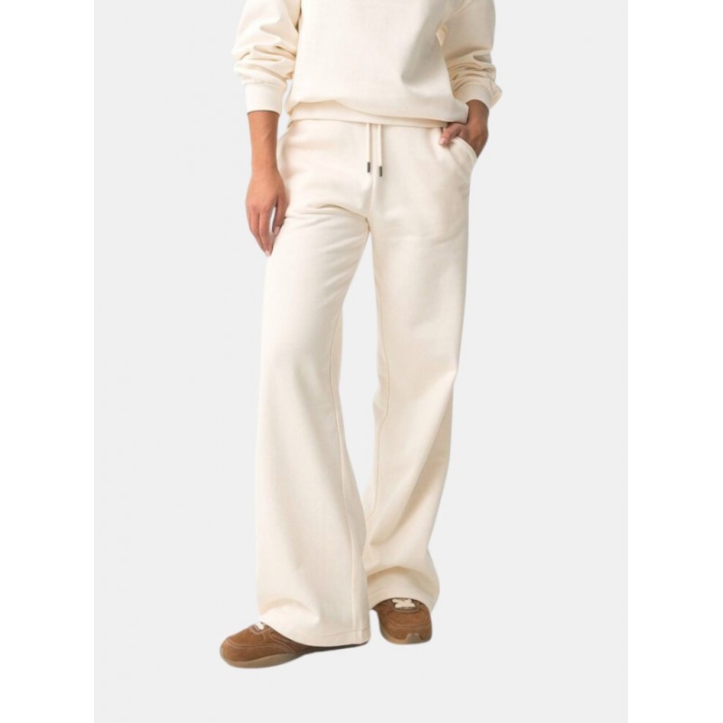 Pantalón de corte recto con cintura elástica y cordón ajustable, bolsillos laterales, detalle bordado a contraste y bajo.