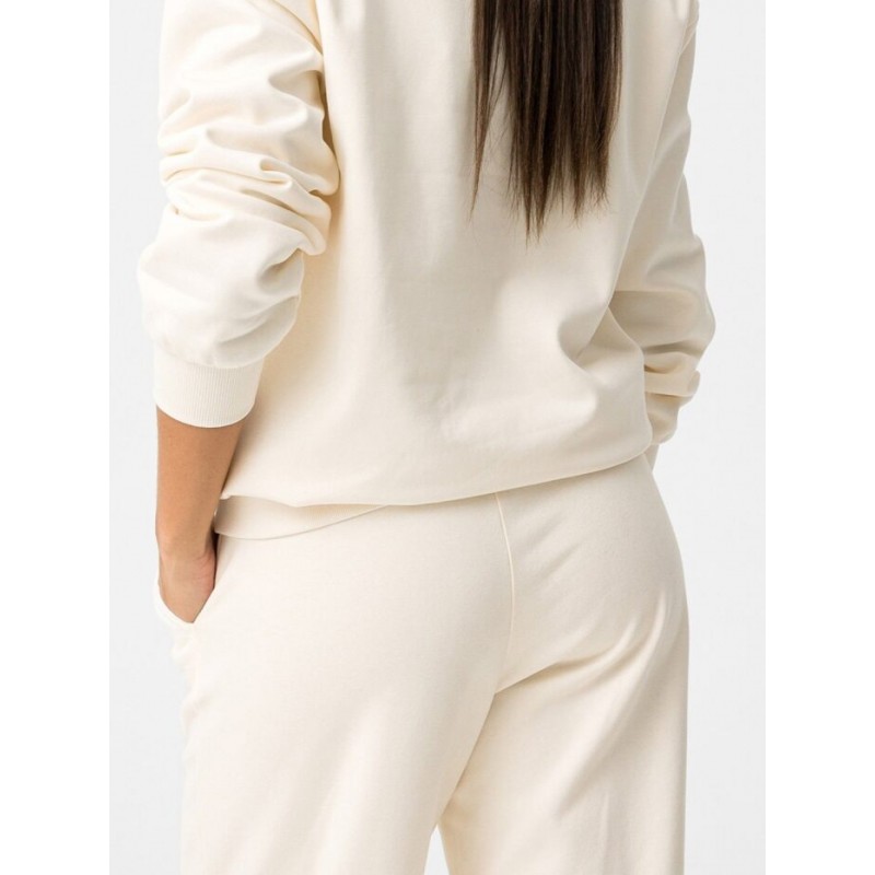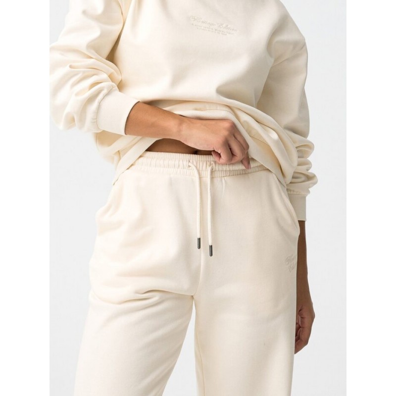 Pantalón de corte recto con cintura elástica y cordón ajustable, bolsillos laterales, detalle bordado a contraste y bajo.