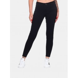 Pantalón tejano para mujer de corte ajustado, cierre de botón y cremallera, trabillas para cinturón, 4 bolsillos y bajo.