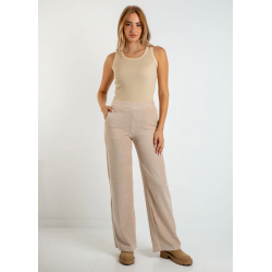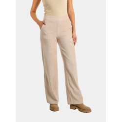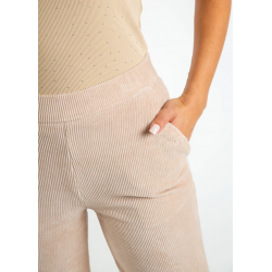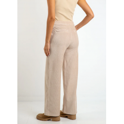 Pantalones de pana con cintura elástica, bolsillos laterales y traseros y perneras anchas.
