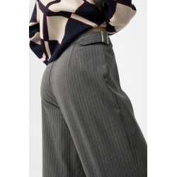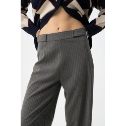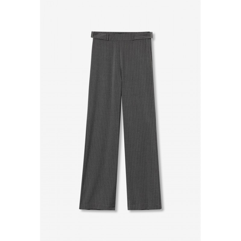 Pantalones rectos para mujer. Con cinturilla ajustable y diseño de rayas finas verticales.