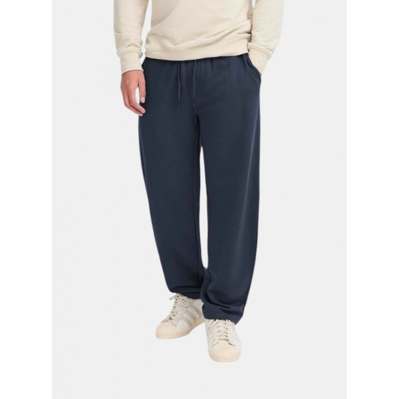 Pantalón deportivo holgado para hombre de cintura elástica con cierre de cordones, bolsillos laterales más uno en la parte trasera, detalles de la marca y pierna ancha.